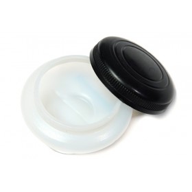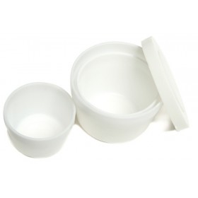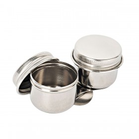 Various types of bowls with a clip for a palette knife, for storing turpentine, oil, or painting mediums.