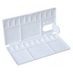 Rectangular and oval plastic palettes in three sizes. Particularly suitable for watercolors and all water-based paints.