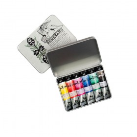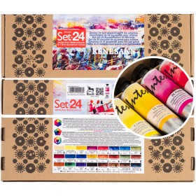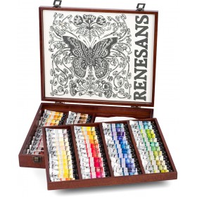 Sets of 12 and 24 of the most popular Renesans watercolor shades, packaged in durable watercolor cases.
