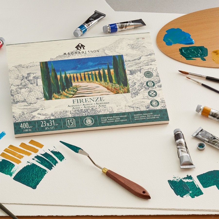 PAINTING PAPER FOR ACRYLIC AND WET MEDIA - 'FIRENZE' - 100% COTTON - 400 gsm - Rough - Acrylic - Grana Grossa - Grainy - Magnani 1404 - paper produced using...