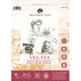DRAWING PAPER - 'VELATA' - 20% COTTON 90 gsm - Natural - Smooth - Magnani 1404 - an absolutely exceptional paper, one of the few papers produced using traditional methods based on old recipes on cylindrical drum machines, and designed for drawing and sketching. It contains 20% of valuable cotton fibers, made from the purest pulp without the use of acids or chlorine derivatives. Its perfectly smooth surface and excellent grip make it ideal for sketches in pencil, charcoal, sanguine, sepia, or pastel.