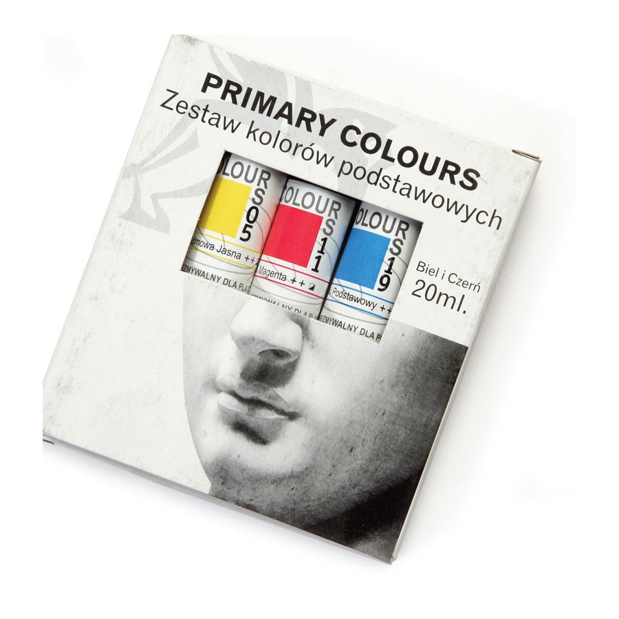 Renesans "Colours" Acrylic Paint Set, a box containing 5 primary colors in 20 ml tubes.
