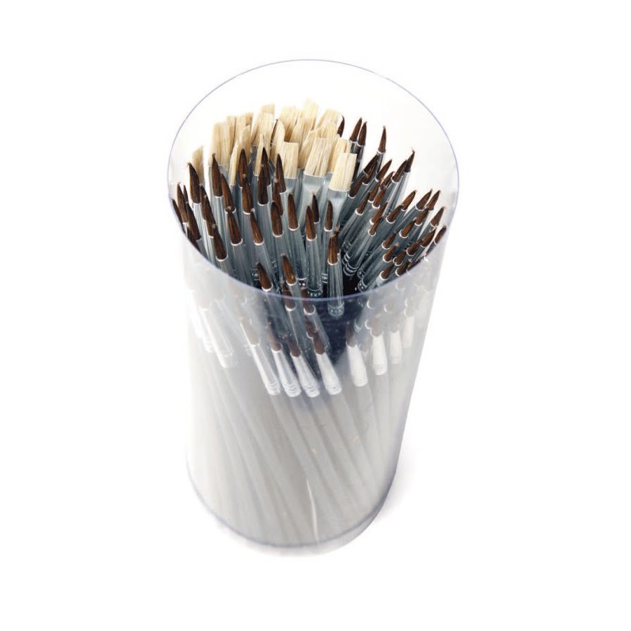 Container for studio and amateur brushes, natural bristles—round and flat, 120 pieces