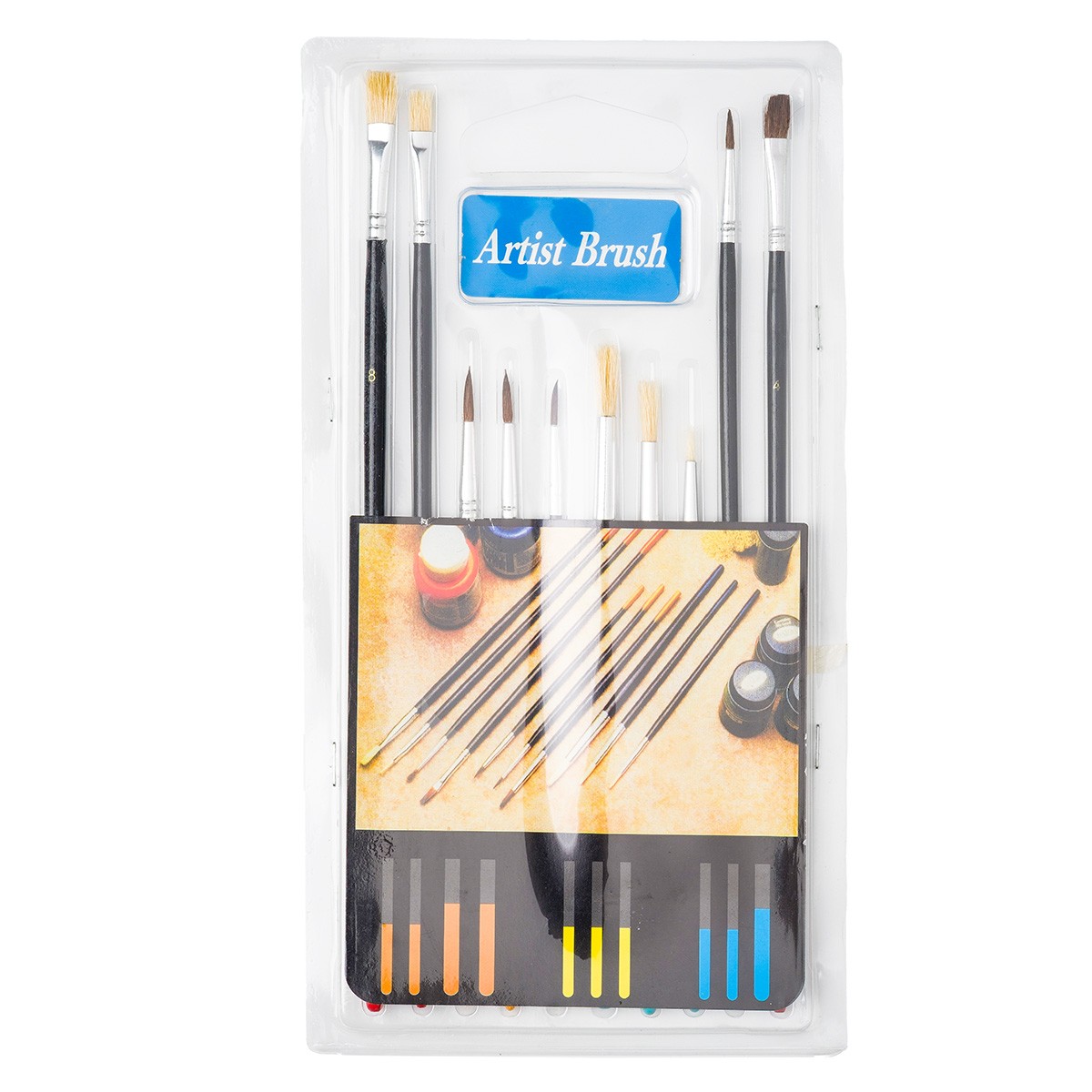 Brush set for beginners—10 pieces, round and flat (WU10), on a blister pack with a handle.