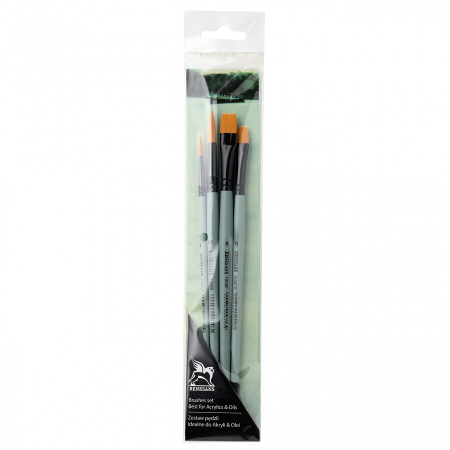 Set of four brushes - 4PC (includes one each of round brushes 1006R #4 and #12, one flat brush 1006F #8, and one cat's tongue brush 1006FR #6)