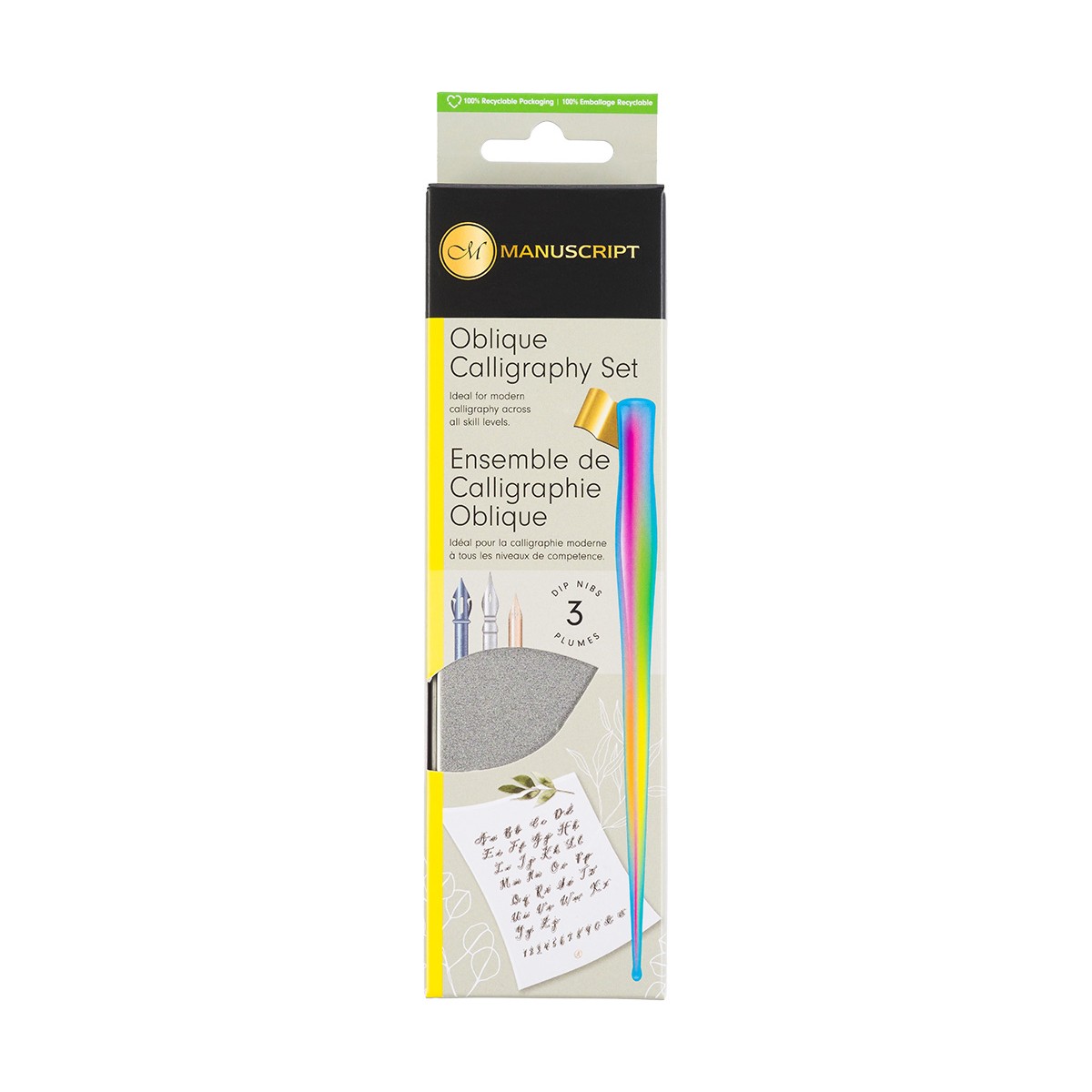 "Modern Calligraphy" Set: 1 Oblique Rainbow pen body + 3 nibs + black ink