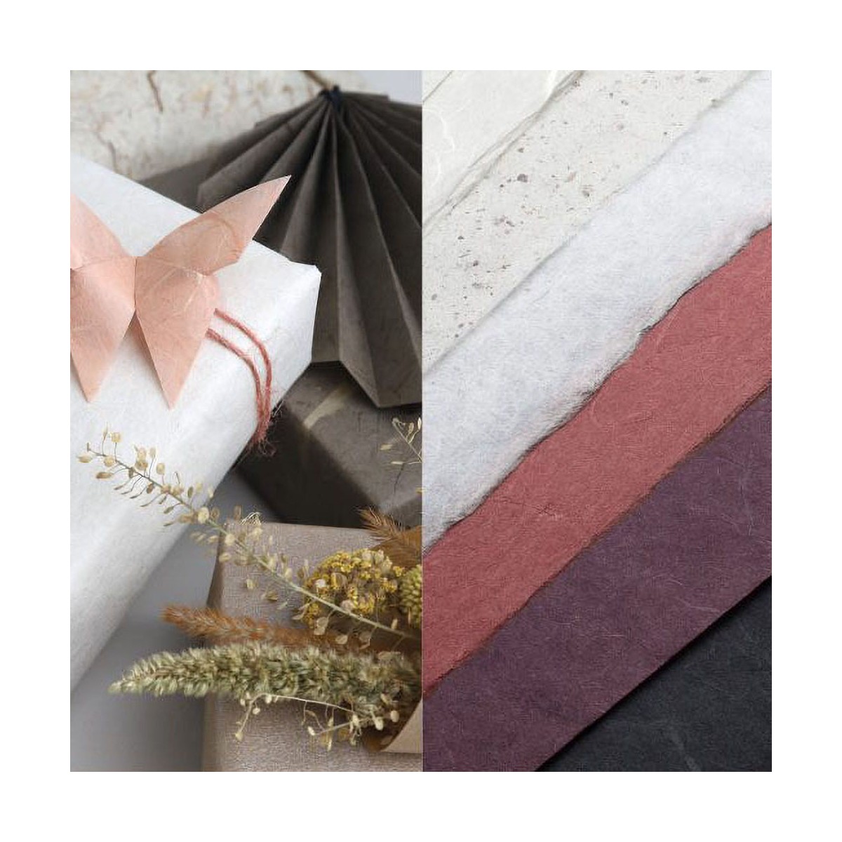 Soft tissue paper with clearly visible mulberry tree fibers, in sheets measuring 63x94 cm.
