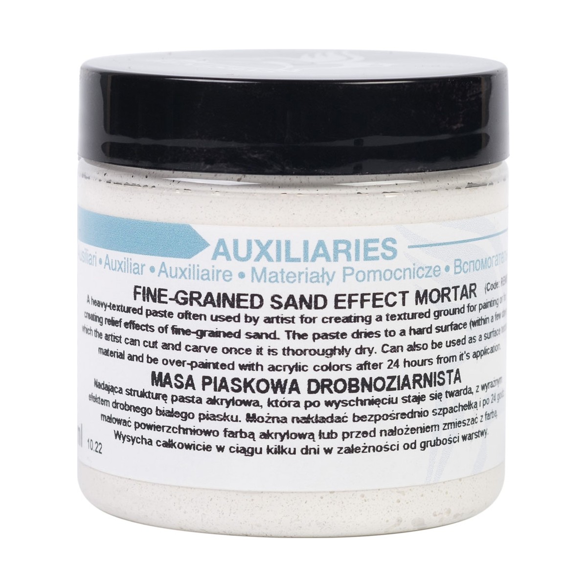 Masa nadająca strukturę z efektem drobnego piasku, do zastosowań w różnych technikach. Kremowa pasta akrylowa, która po wyschnięciu staje się twarda, z wyraźnym efektem drobnego, biąłego piasku. Można barwić ją w masie lub malować po wyschnięciu. Pojemność 110ml, w plastikowym słoiku.