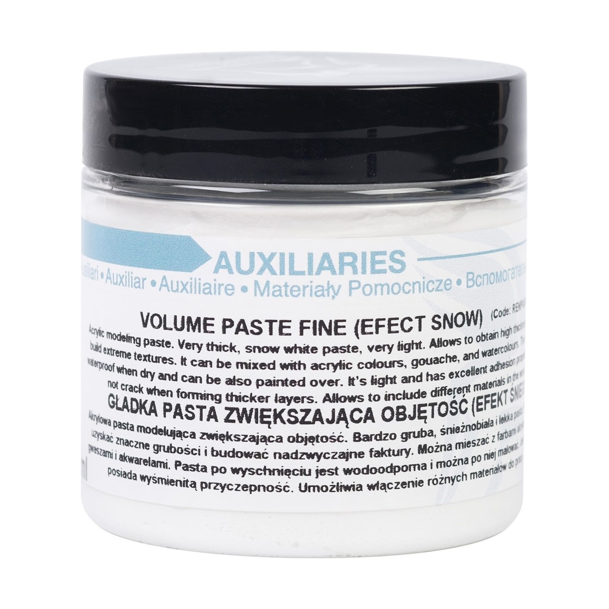 Akrylowa pasta modelująca zwiększająca objętość. Bardzo gruba, śnieżnobiała i lekka. Pozwala uzyskać znaczne grubości i budować nadzwyczajne faktury. Można mieszać z farbami akrylowymi, gwaszami i akwarelami. Pasta po wyschnięciu jest wodoodporna i można po niej malować. Jest lekka i posiada wyśmienitą przyczepność.