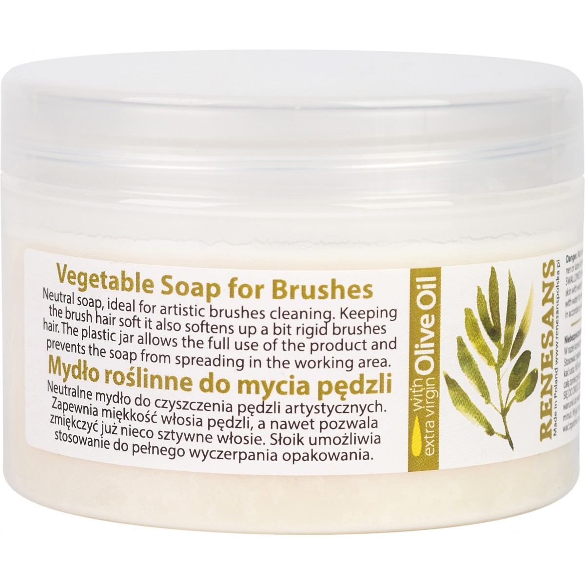 Neutralne mydło do czyszczenia pędzli artystycznych. Zapewnia utrzymanie miękkości włosia i pozwala zmiękczyć też lekko sztywne włosie. Praktyczna wersja w słoiku pozwala uniknąć rozproszenia po powierzchni roboczej i umożliwia stosowanie do pełnego wyczerpania opakowania.