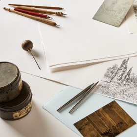 ART PRINTING, PAINTING, AND DRAWING PAPER - 'PESCIA' - 100% COTTON - 200 and 300 gsm - Smooth - soft to the touch and velvety paper produced using traditional methods on cylindrical drum machines. This is a prestigious paper for art printing, drawing, and painting, produced using traditional methods on cylindrical drum machines. It is a 100% cotton, acid-free paper made from the purest cotton fibers. It is bound very delicately using a synthetic gelatin substitute, without the use of animal-derived agents, which yields excellent results in fine art printing. Its acid-free nature guarantees resistance to aging. Thanks to its very delicate sizing applied only within the paper mass and the use of cotton in its natural form, it is ideally suited for printmaking techniques such as lithography, linocut, screen printing, etching, and other intaglio techniques. It is also excellent for watercolor; particularly the heavier weights can absorb large amounts of water without warping. It withstands all corrections and the removal of paint from its surface well; however, it is more difficult to wash out, but this makes it very suitable for layered painting, and additional layers can be added repeatedly. Recommended for painting with watercolors, tempera, gouache, ink, or acrylic.