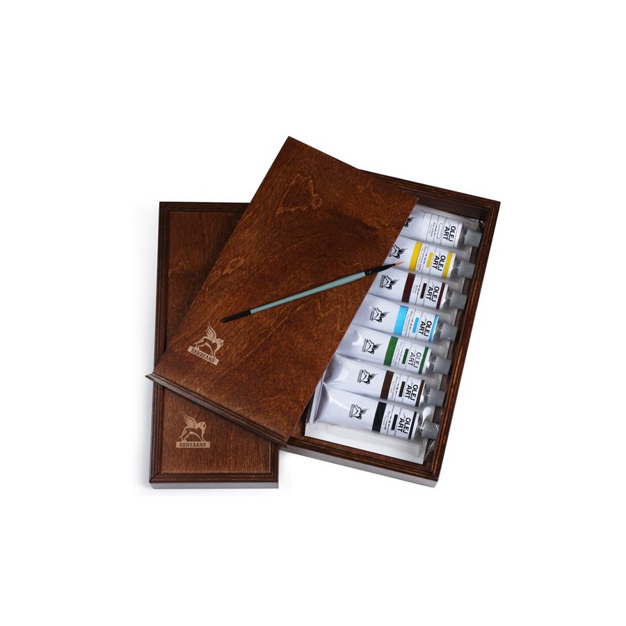 "Olej For Art" oil paint set, wooden paintbox, 7 colors, 60 ml tube, paintbrush.