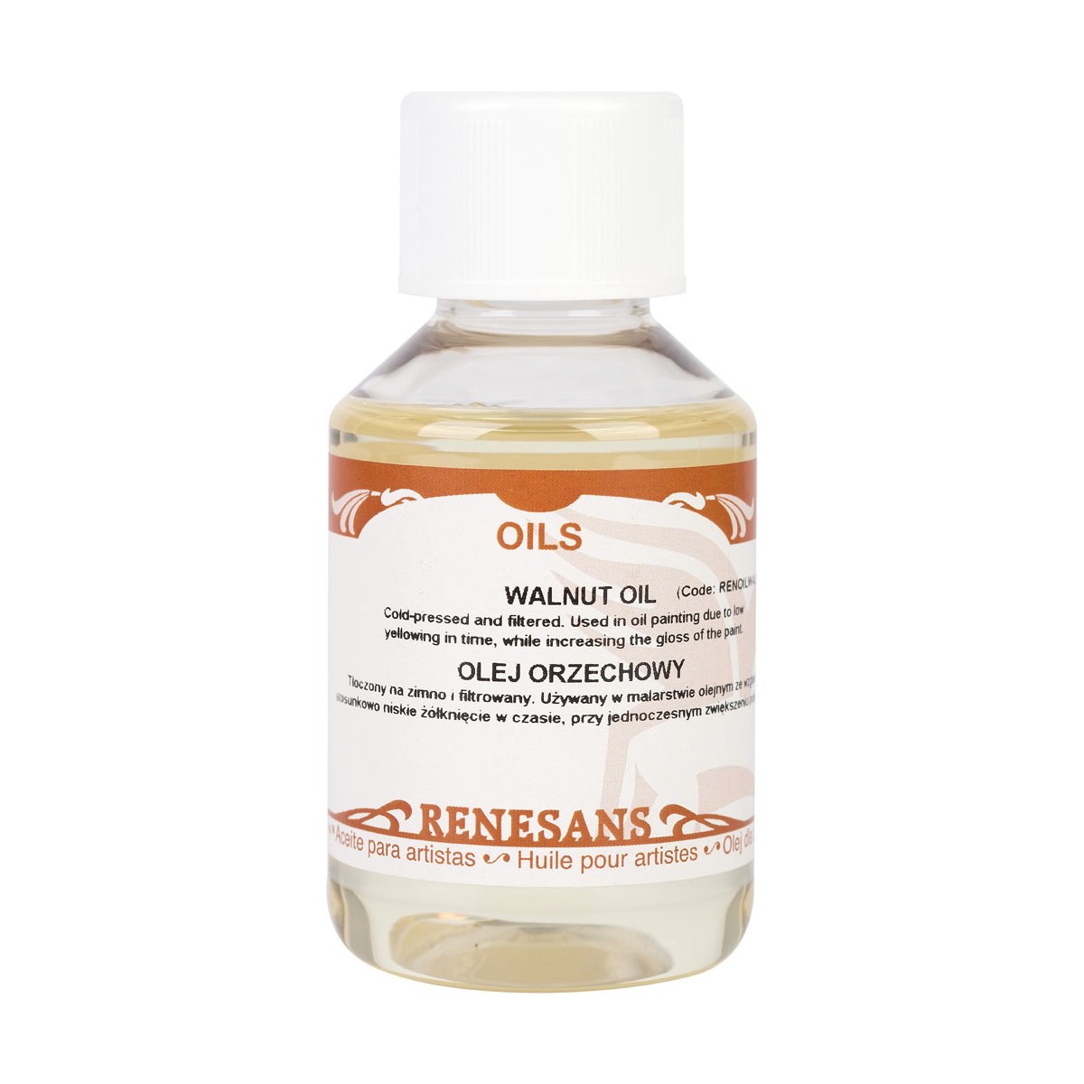 Tłoczony na zimno i filtrowany. Używany w malarstwie olejnym ze względu na stosunkowo niskie żółknięcie w czasie, przy jednoczesnym zwiększeniu połysku farb.