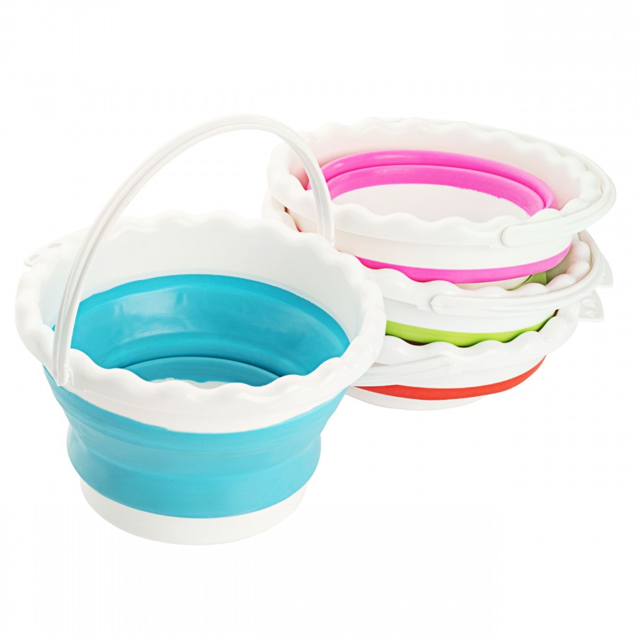 Foldable plastic water bucket, 20.5 x 16.5 cm.