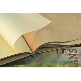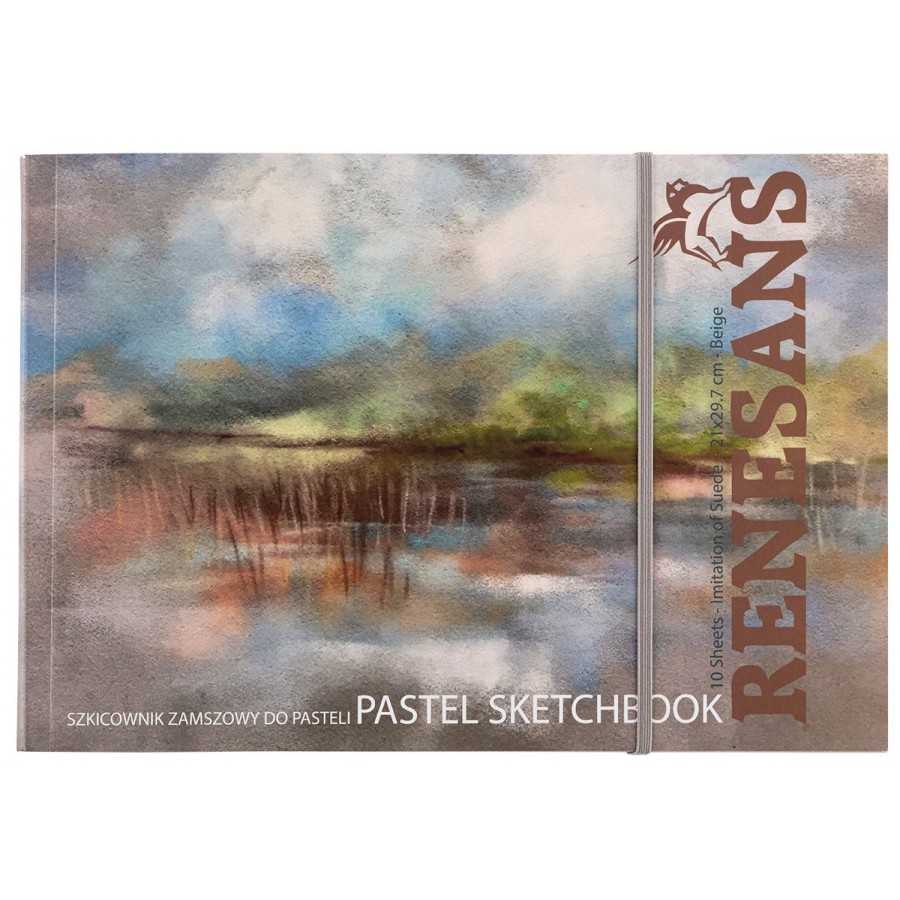 A professional pastel sketchbook containing 10 sheets of suede paper in 5 colors. The sketchbook includes 2 additional stiff interleaves, and the sheets are separated by parchment inserts
