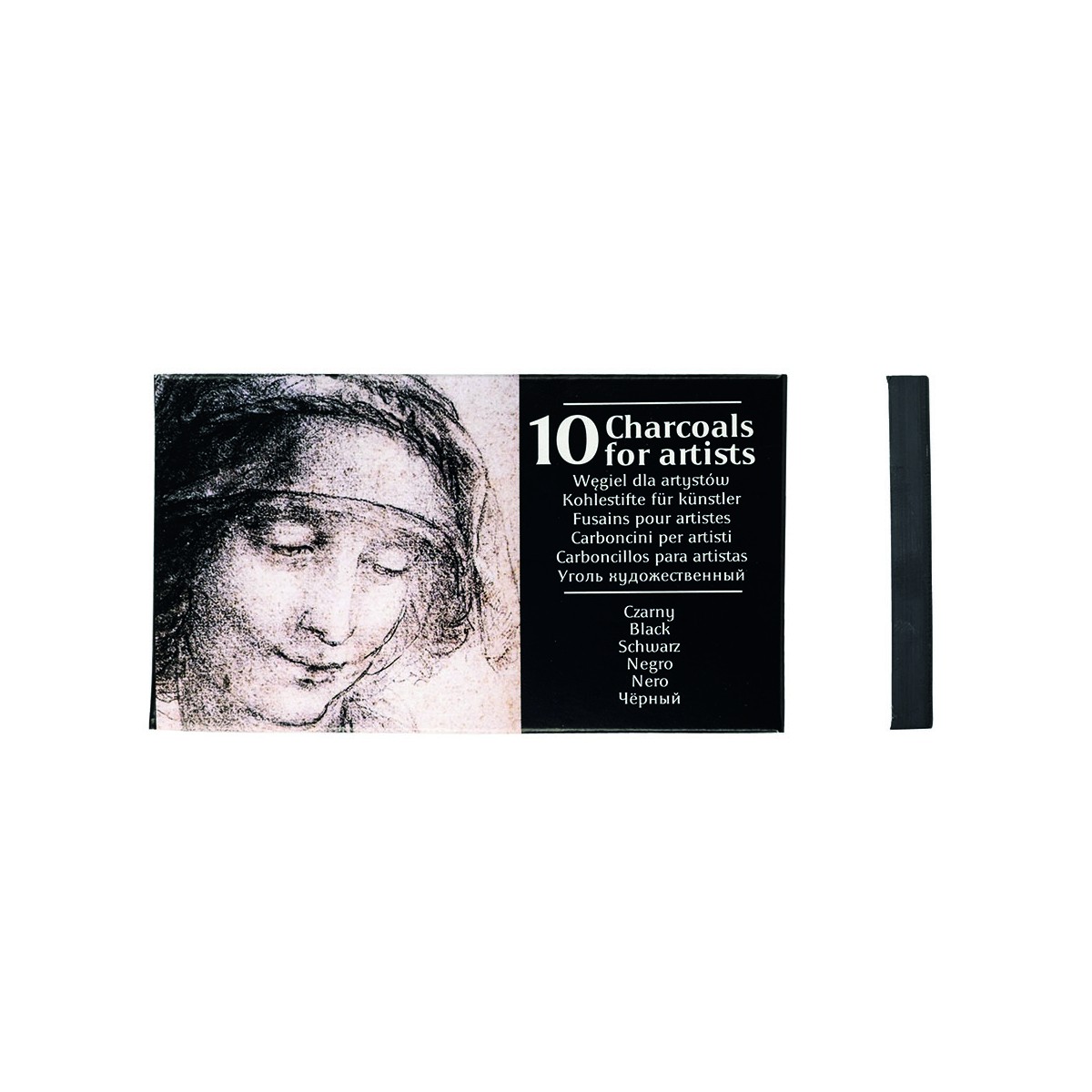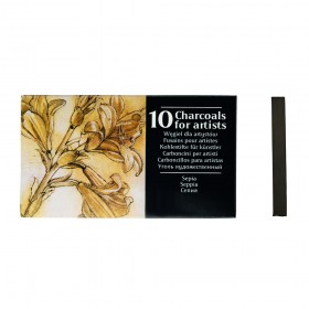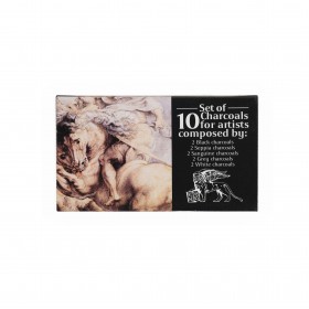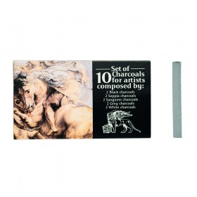 High-quality compressed charcoal sticks. Available in 5 shades, each pack containing 10 sticks, as well as a set of 10 sticks (2 of each color), which also includes a gray shade.