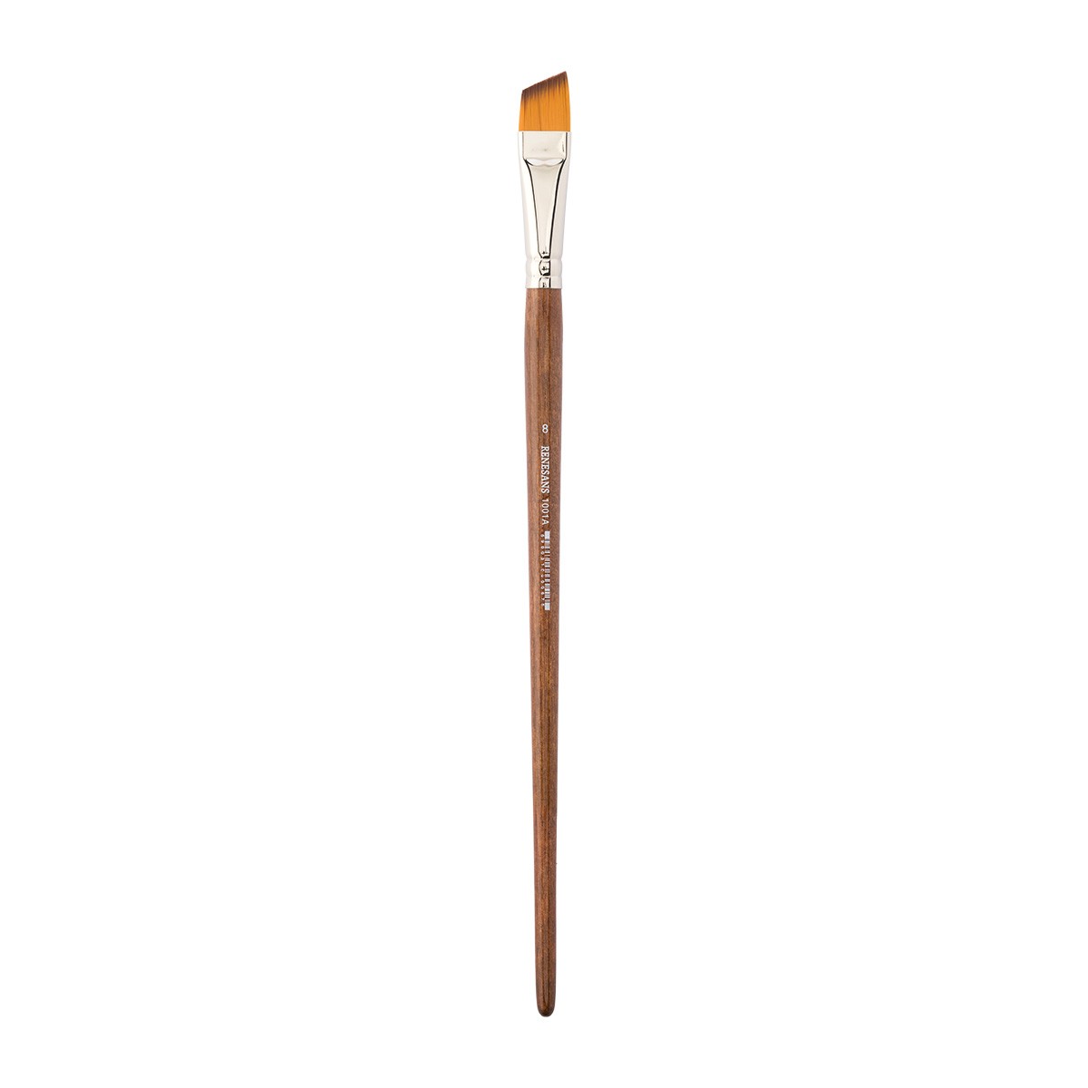 Gold synthetic brush, angled, nickel-plated brass ferrule, long handle - LIGHT WALNUT