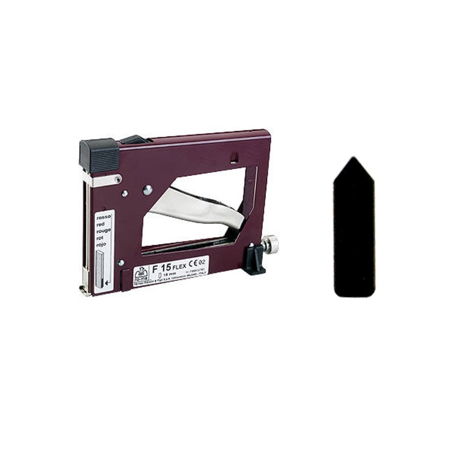 The gun uses 15-gauge metal tabs, 0.4 mm thick. Ideal for photo frames and other frames with backs that are frequently folded back.