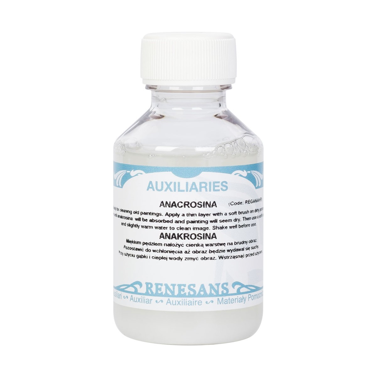 Anakrosina to emulsja na bazie mydła i węglanu amonu przeznaczona do czyszczenia starych malowideł. Po naniesieniu płynu tamponem na obraz należy go pozostawić na krótki czas, tak aby płyn mógł reagować. Następnie zwilżoną w ciepłej wodzie, bawełnianą szmatką warstwa anakrosiny musi zostać delikatnie usunięta. Dostępna w pojemności 100 I 250 ml.
