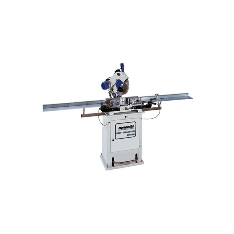 The saw performs best when fully equipped, i.e., with a base featuring a dust collector, extension arms with a measuring scale patented by Omga, a plexiglass stop, and a guide rail lock (choice of mechanical or pneumatic lock). Technical