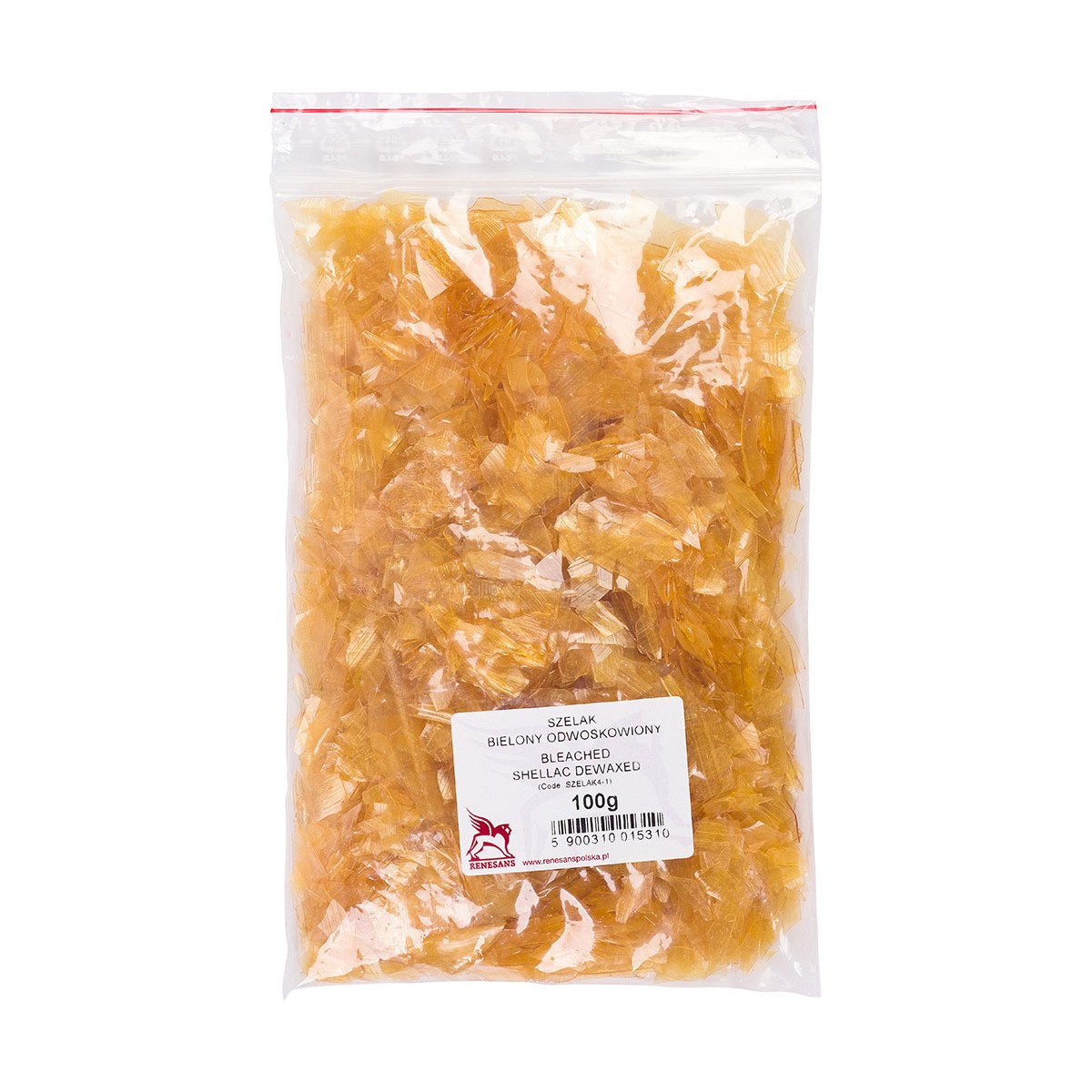 Shellac is a type of natural resin obtained from the shells of insects that live on trees known as lac trees in India and Thailand. Depending on the type of tree, shellac ranges in color from yellow to reddish-brown. It is a semi-finished product from which, after purification and bleaching, orange and colorless shellac are produced. It comes in the form of a membrane that is cut into smaller pieces. Natural shellac, despite the widespread use of synthetic resins, remains irreplaceable in many fields. When dissolved, it serves as an excellent insulator or protective varnish. The most popular types are lemon, orange, ruby, and bleached. All these types are available in 100-gram and 1-kilogram packages.