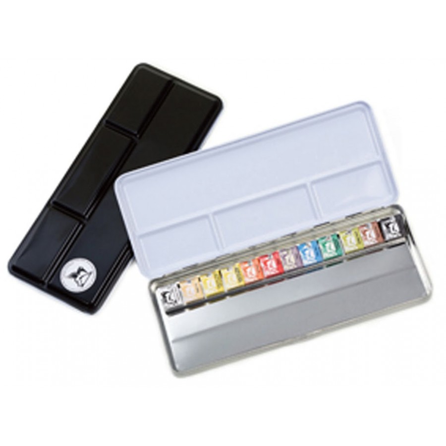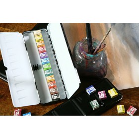 Professional watercolor blocks. Handmade, based on gum arabic and honey. Set of 12 colors in a metal case. Half-pan: 0.5 ml per piece.