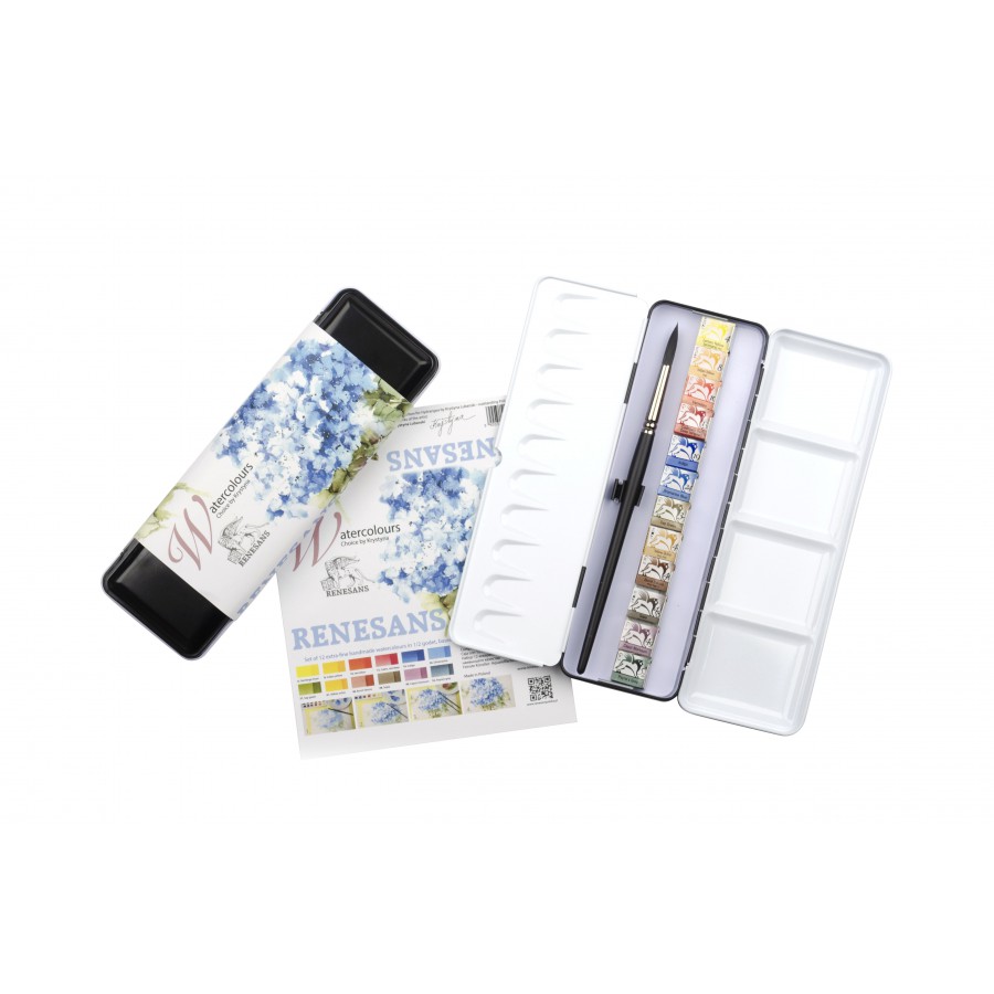 WATERCOLOR SET - HORTENSIA by KRYSTYNA PROFESSIONAL METAL CASE (12 colors) + brush