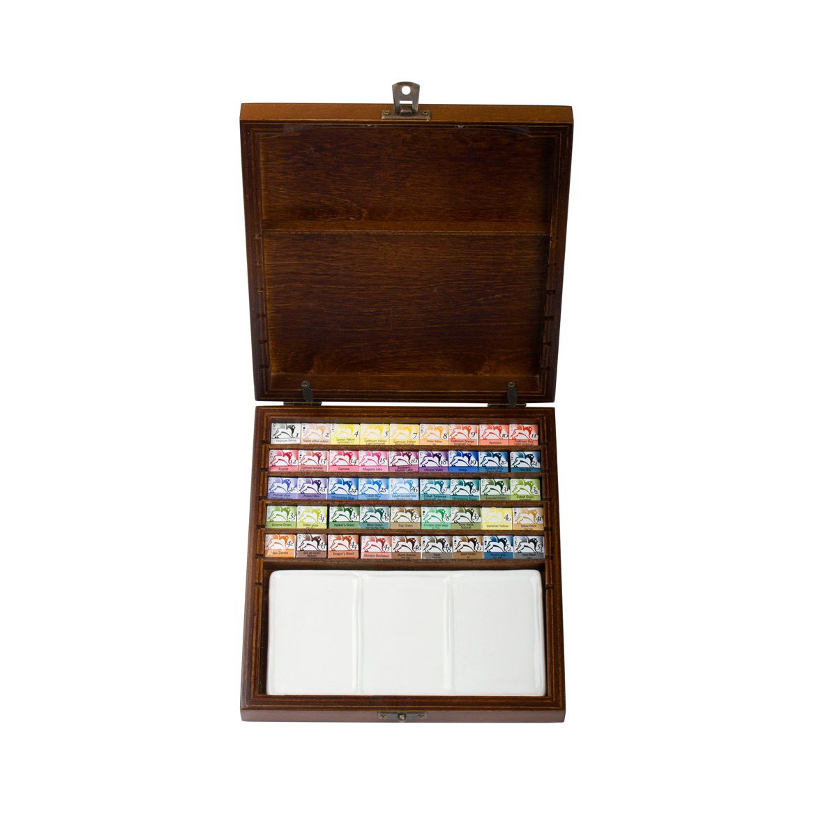 Kaseta drewniana - 45 akwareli w kostkach z paletą ceramiczną