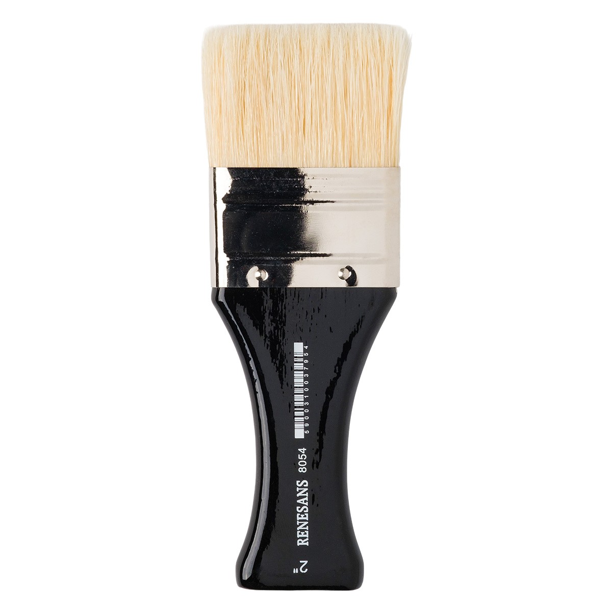 Pędzle szczecinowe szerokie, krótka drewniana, czarna rączka, czerwona skuwka