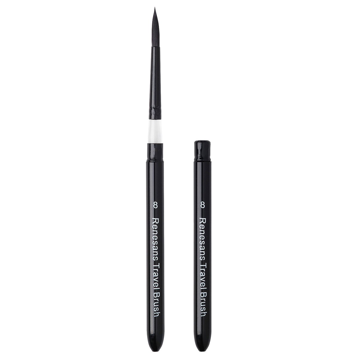 Travel Brush do akwareli  - imitacja wiewiórki mix z włosiem naturalnym. Krótka, metalowa, czarna rączka, zamykany.